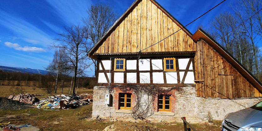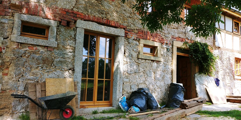 Efekt końcowy zawdzięczamy firmie z Gryfowa Śląskiego i panu Maksymilianowi. Wymierzył okna i dał korzystą wycenę. Był to sierpień 2017. Możliwy montaż na styczeń 2018. Dużo czasu na przemyślenia. Po wycenie musieliśmy jednak zrezygnować z wymiany drzwi wejściowych. Spróbowaliśmy je poddać renowacji, ale niestety efekt jest niezadowalający. Wymiana drzwi jest nieunikniona. Otrzymaliśmy jeszcze kilka wycen od firm z różnych rejonów Polski, ale oferta pana Maxa była najkorzystniejsza.
