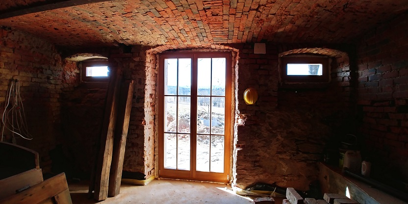 Produkcja okien przesunęła się ze stycznia na luty, a montaż był możłiwy dopiero w marcu 2018. W między czasie zdążyłem wyczyścić ściany z cegieł wewnątrz, więc wszystko zgrało się w czasie.