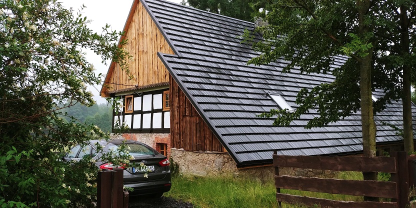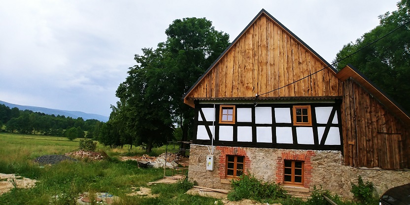 Sprawdzona metoda przez sąsiadów z Gajówki i Rębiszowa. Dzięki temu nasza 12 cm ściana jest ciepła i zdrowa. Belki dobrze zakonserwowane. A efekt wizualny szachulca widoczny z zewnątrz i wewnątrz.