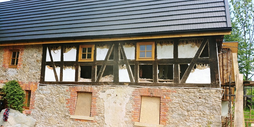 Informacji jak remontować takie ściany nie ma wiele. Tu dziękujemy wszystkim tym, którzy remontując takie domy opisywali to na swoich stronach instrnetowych. W ten sposób kształciliśmy się w temacie i szukaliśmy różnych rozwiązań. Wszystko by odtworzyć piękno szachulca.