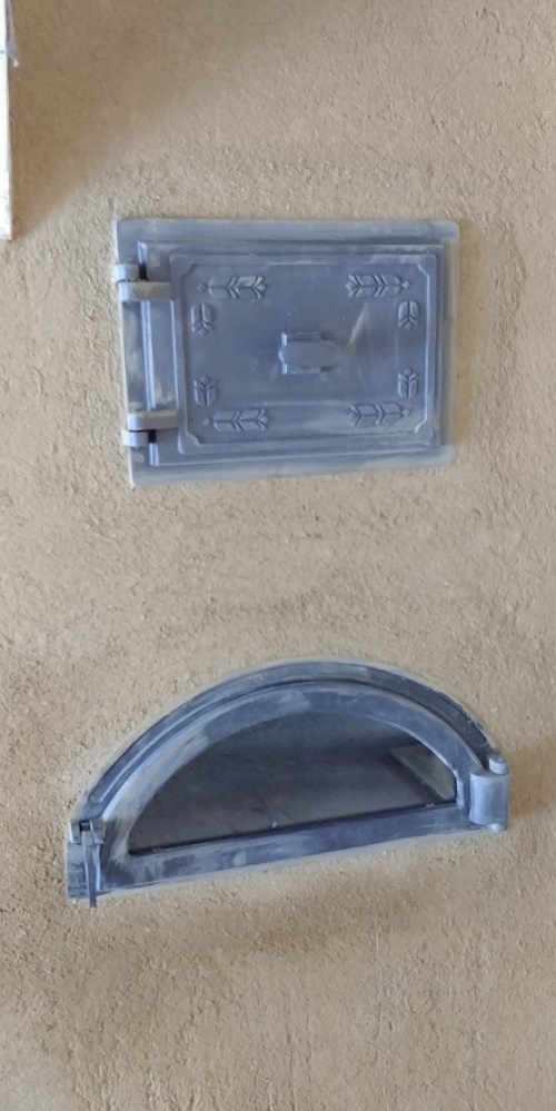 W korytarzu pojawiły się też nowe drzwiczki do pieca chlebowego. Pierwszy ogień już w środku zapłonął. Na pierwszy chleb musimy jeszcze poczekać.