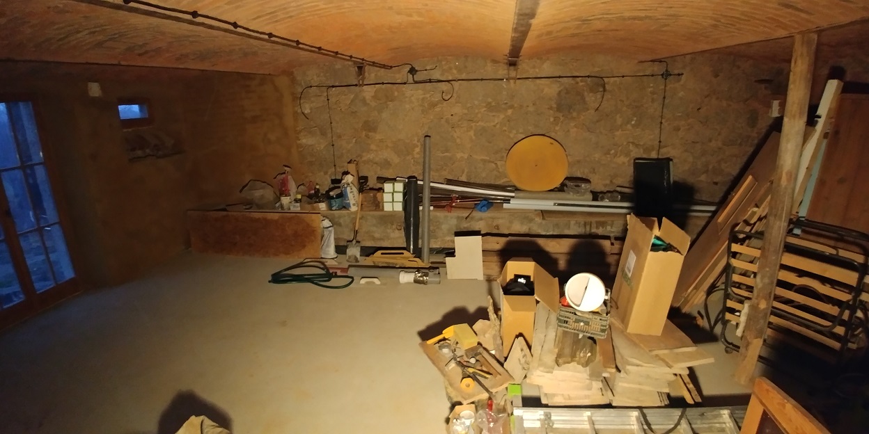 Stajnia / salon: na tę chwilę pełni funkcję magazynu. to pomieszczenie wykończymy jako ostatnie. Zastanawiamy się nad zatynkowaniem jeszcze jednej sciany. Na zdjęciu jej nie widać, jest po prawej stronie.